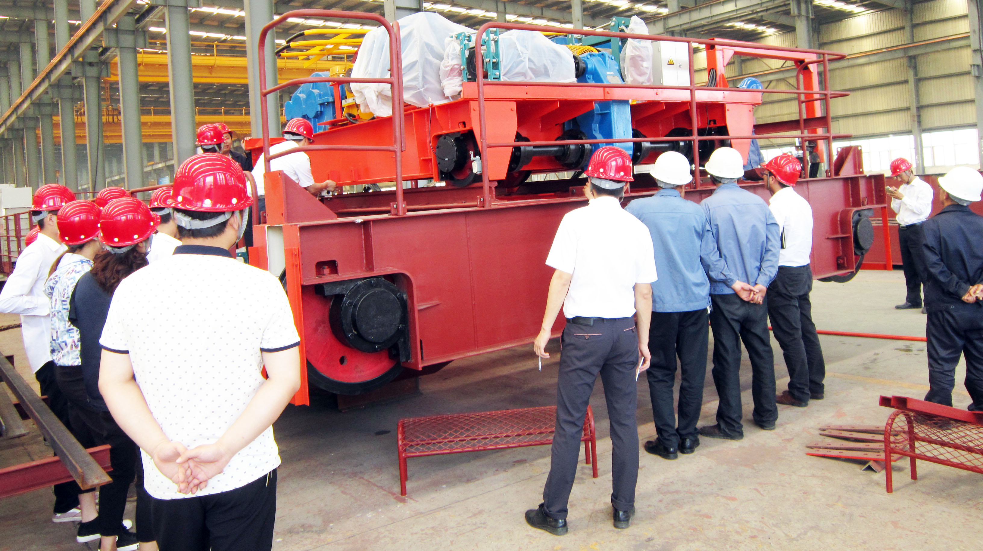 5月21日上午,大方公司總經理胡旭、生產副總李曉寧帶領技術部、質量保障部和生產班組長對已經制作完畢的QD32/5t-22.6m雙梁起重機進行場內組裝驗收、評審。胡總和大家一起來到現(xiàn)場認真查看評審樣機,評審過程中發(fā)現(xiàn)的問題大家相互討論,從電纜橋架的合理布置到電器柜底座的安裝,從小車運行的極限位置到限位開關、緩沖器的位置調整,從小車導電架的高度到小車安全底座的尺寸是否符合圖紙等等,大家都認真討論,暢所欲言,現(xiàn)場提出自己的整改意見。不知不覺兩個小時就過去了,評審現(xiàn)場的氣氛還是那么的濃烈,大家積極測量、實驗和討論,**終提出了近20條提升質量的改進建議。