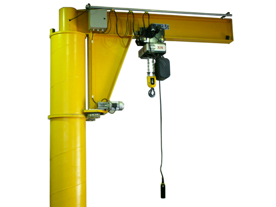 旋臂起重機(jī)是近年來發(fā)展起來的中小型吊運(yùn)設(shè)備。額定起重量為0.25~16t,其結(jié)構(gòu)獨(dú)特、安全可靠,具有高效、節(jié)能、省時、省力、靈活的特點(diǎn)。且能在三維空間內(nèi)隨意操作,特別是在短距、密集性吊運(yùn)的場合更能顯示出比其它常規(guī)性吊運(yùn)設(shè)備獨(dú)有的優(yōu)越性。廣泛應(yīng)用于車間、倉庫、碼頭等固定場所。